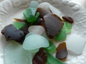 Taking a leisurely walk on the beach in the morning with the hubs, the ocean’s frothy waves roll onto my feet and I spot a little treasure. You don’t find too many intact seashells these days but you can still find wonders. Yesterday I began collecting something new…I now collect sea glass.