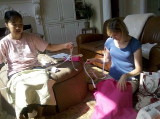 Then shortly after breakfast on Tuesday, I left my house and began my second day of SMBO. This time, I joined my friends, Jo and Mavis. Our intention was to make pillowcase dresses to be given to girls we will never meet this side of heaven. Jo’s sister-in-law has personally sewn 200 dresses, how hard could it be for the three of us to crank out a bunch for this worthy cause in a morning?