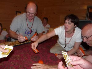According to family legend, Grandma Muth used to say, “there is no family when it comes to cards.” Uncle Brad brought Pit, a frenzied card trading game that he has hung on to since the 70’s as the ugly orange bell and groovy box indicates. Who knew this gentle man has a ruthless side? Who knew that normally demure Aunt Nancy turns into a wild woman with a deck of cards?