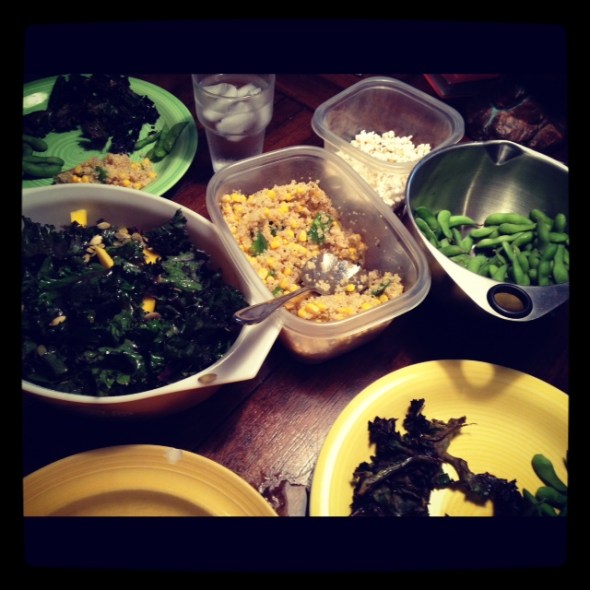 Add blackberries plus yellow and red peppers to give the salad a summer flair. For a different salad, throw some pears and walnuts for a delightful and slightly fancy twist. Often in the Christmas season, I toss handfuls of pomegranate seeds to make it festive and add a fun crunch. My buddy and writer pal Meredith stopped by one night and got to try pomegranate seeds which totally rocked her world! #truestory