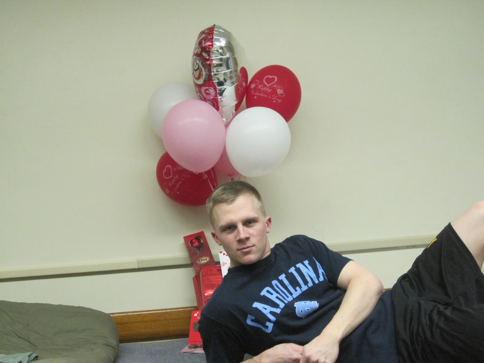 From the moment I met this young lady (and I remind my OS that I met her first so he owes me BIG time), I knew she was special. You know your son has a great gf when she asks YOU for Valentine’s Day ideas. We conspired and came up with a plan. Since it is hard to celebrate this day with thousands of miles separating a couple, we enlisted the help of friends at West Point.During the day, Nate got a message that he had a package to pick up. He arrived at Central Guard Room and here’s what he received.As we all know, nothing says “Te amo“ more than a flashy Spanish Valentine’s Day card.