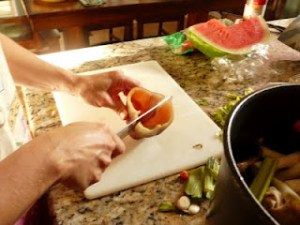 First we dipped little strips of cotton material in water. Once wet, we placed the strips on the table and began rolling the strips diagonally.