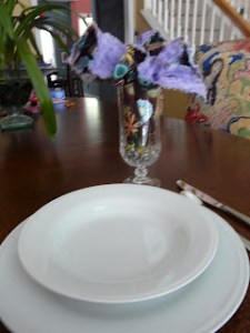 For days I had been planning Saturday night’s dinner. I moved furniture, consulted with the family regarding the menu, bought groceries and made the chicken broth for the gumbo. I ironed napkins, wrote on our kitchen chalkboard and did one of my all-time favorite things, set the tables. Oh how I love to make a pretty table for my family and friends.