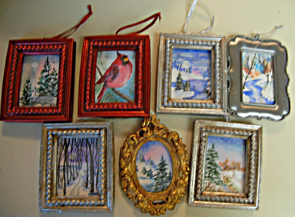 Continuing on the glass ornament theme, you might like these especially because of the unique way they are designed. The main image is on the INSIDE! The image is put on a clear backing which is almost invisible at first glance. The image is then placed inside the ornament and the outside is decorated with polka dots or other images.This gives the ornament a multi-dimensional look that really pops! The finishing touch is the addition of multi layers of korker ribbon to coordinate with your ornament choices.Click here for the talented lady’s website on etsy.