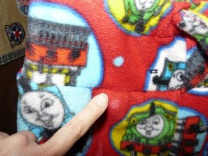 I made dinner with the help of my family and immediately after shoveling in the last bit of chicken manicotti, I whipped out my trusty sewing machine and worked on Aaron’s Thomas the Tank Engine pj pants.