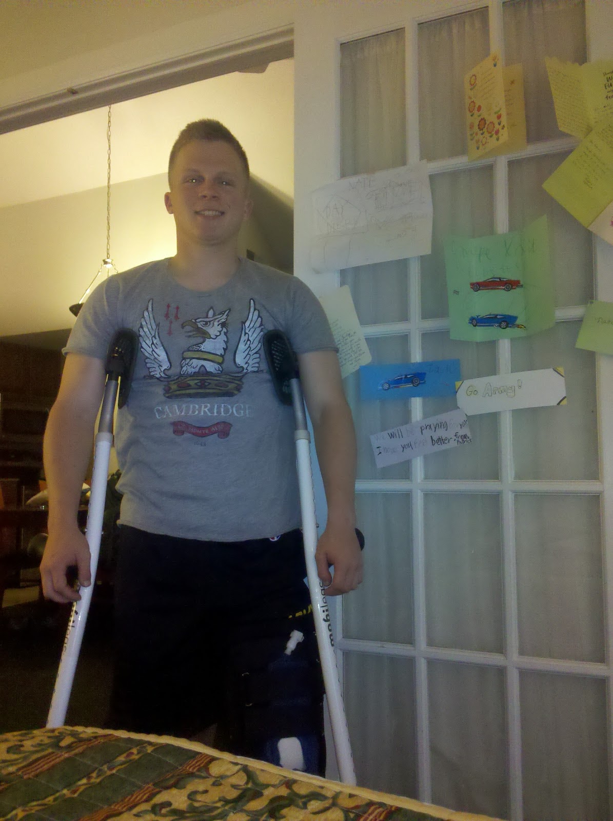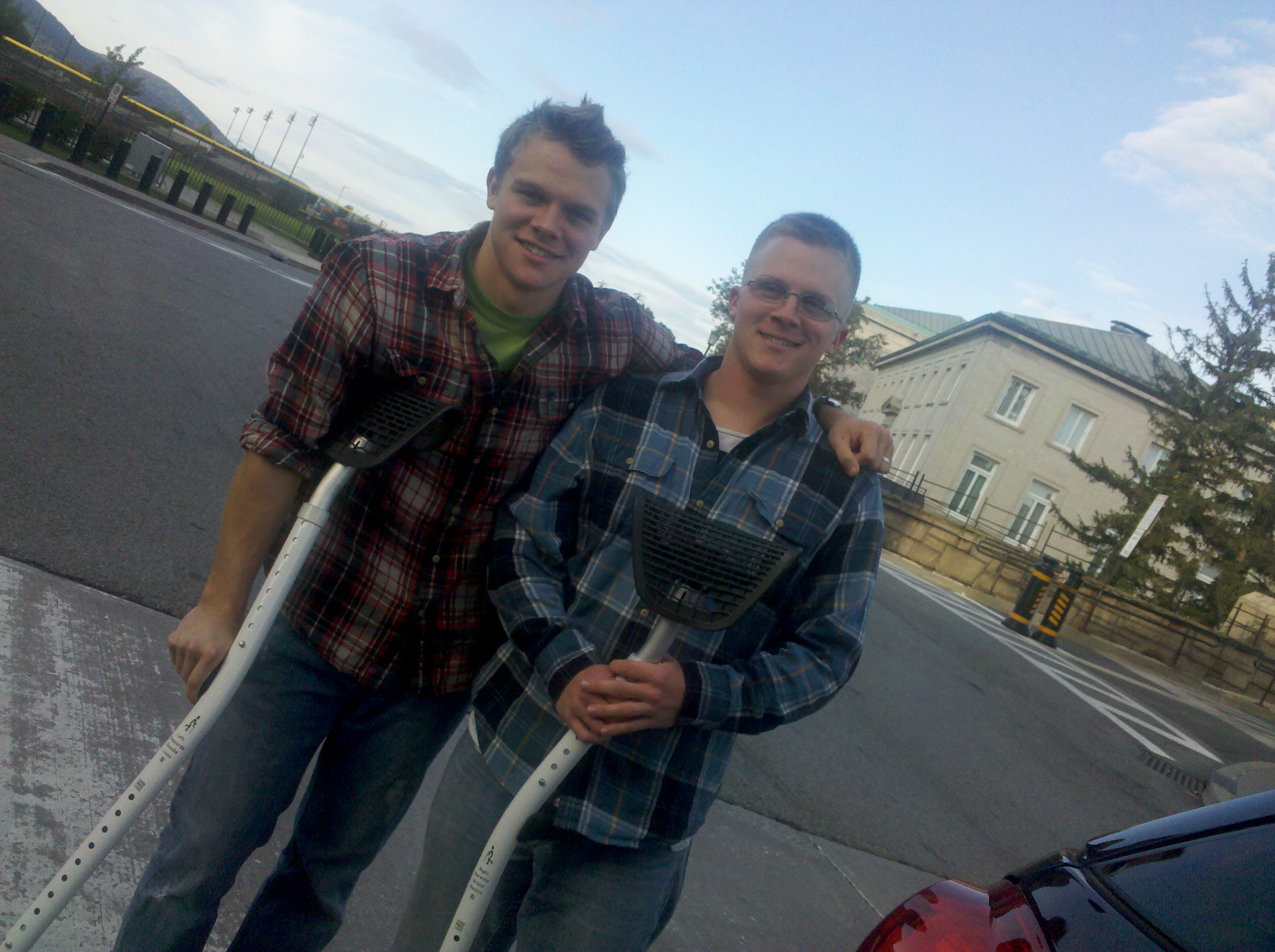 Nate was limping along on his Mobilegs as Aaron carried Nate’s stuff back to his room.